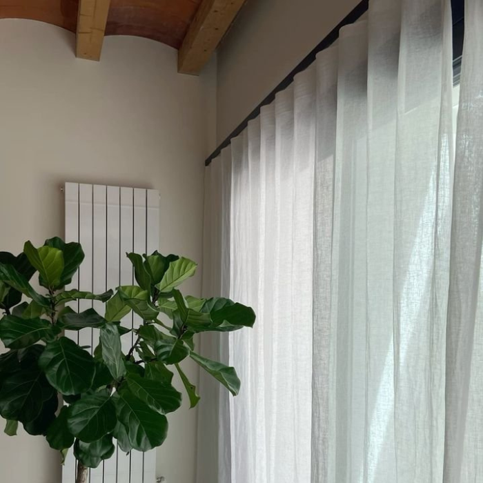 Cortina tradicional con barral de hierro, puede ser simple o doble. Contamos con un amplio catálogo: gasa rústica, gasa de lino, gasa de hilo, voile, lino natural y black out, entre otras.