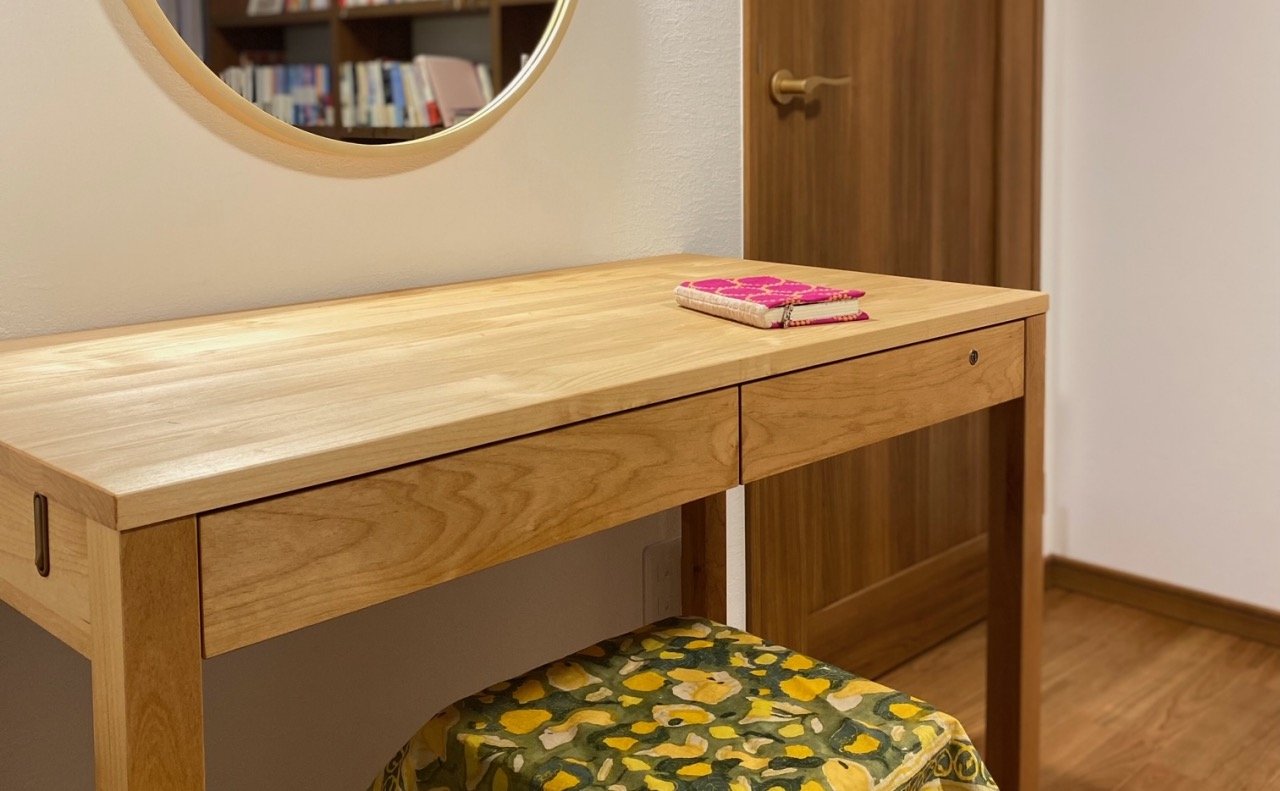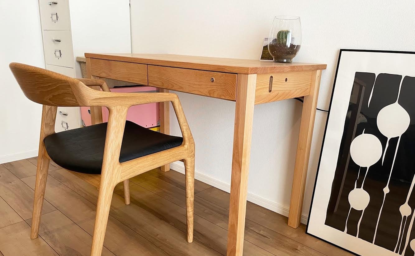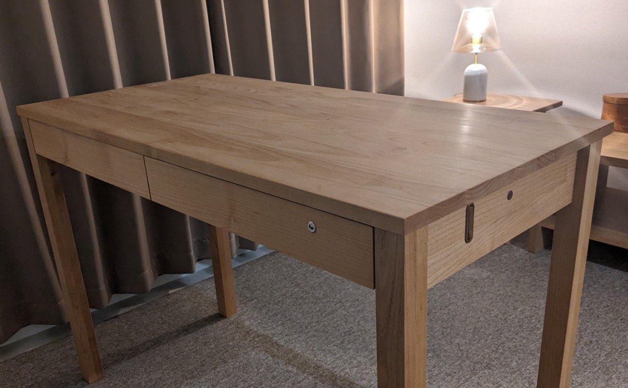 Este escritorio tiene patas de madera maciza de Lenga y tapa de enchapado en Lenga. Incluye 2 cajones. Consultanos para diseñar uno a tu gusto!