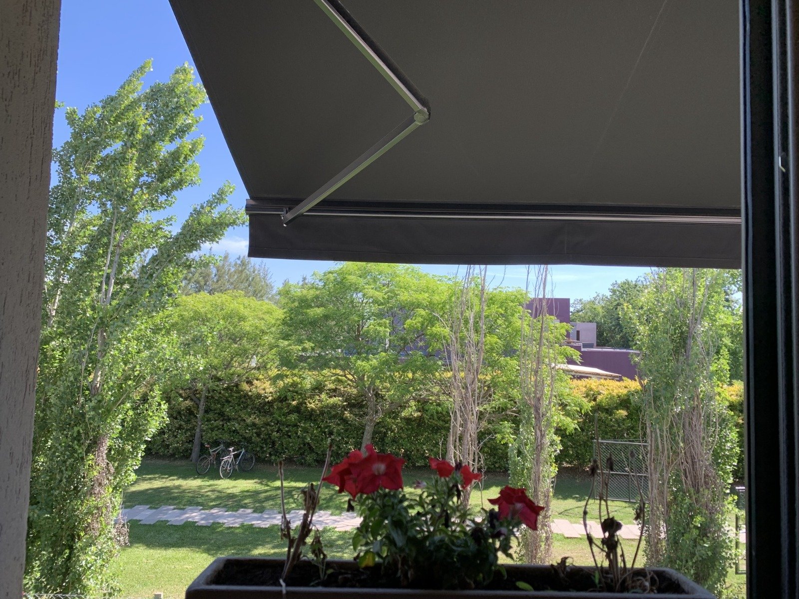 Toldo de brazos extensibles con sistema Hellix italiano, reconocido por su precisión y durabilidad. Su eje nervado de 70 mm y brazos de aluminio con eslingas de acero garantizan resistencia y estabilidad.
